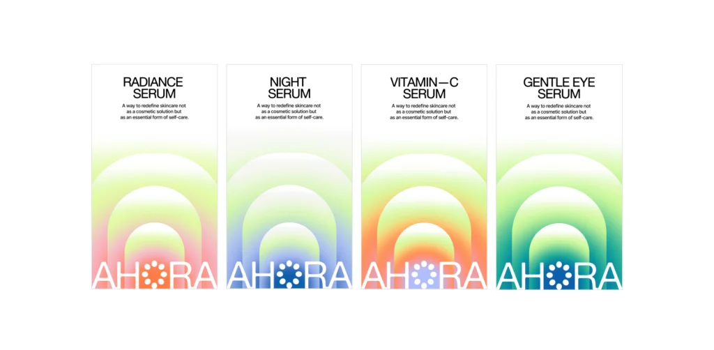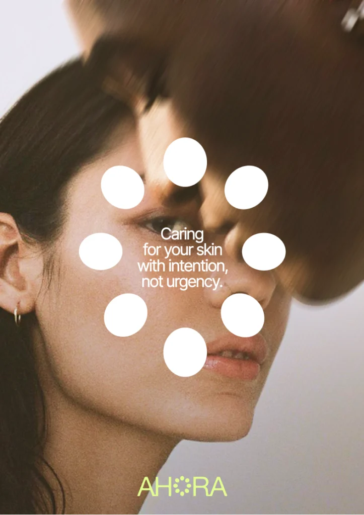 Our collaboration redefined skincare as an essential form of self-care rather than a cosmetic fix. Starting from the belief that skin is an organ, not just an aesthetic feature, we shifted focus from anti-aging to caring for the present moment. Guided by the values of instinctive, conscious, and radiant, the concept “Ahora” embodied time as presence and possibility. Minimal, understated tones and dynamic layouts shaped the visual identity, translating this philosophy into packaging, branding, and strategy.
